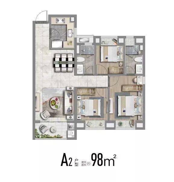 在售户型面积:建面约98-124㎡三至四房,主力户型为98㎡三房两厅两卫、124㎡四房两厅两卫