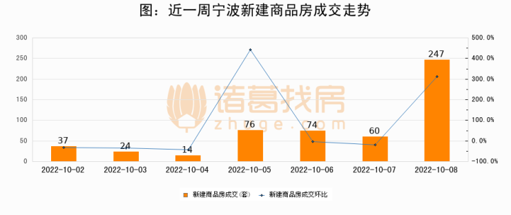 根据宁波市房产市场管理中心数据显示,2022年10月08日宁波新建商品房成交247套,较昨日增加187套,环比上涨311.7%