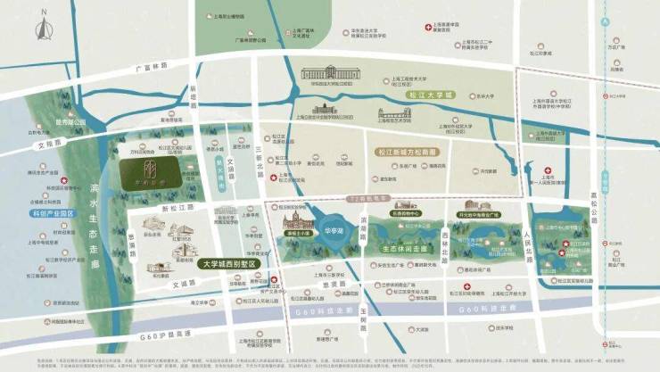 紧邻松江大学城,集聚东华大学、上外、华政等8所高校,人文氛围浓厚