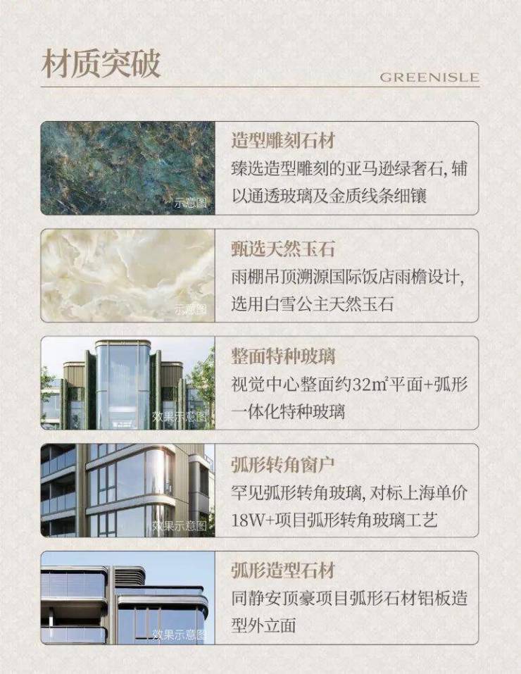 海派美学建筑:致敬邬达克、孙科别墅等海派经典,采用弧形玻璃、奢石门头、波浪铝板等高端工艺,立面颜值出众