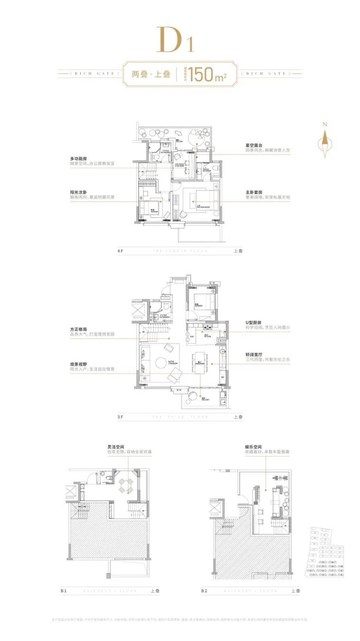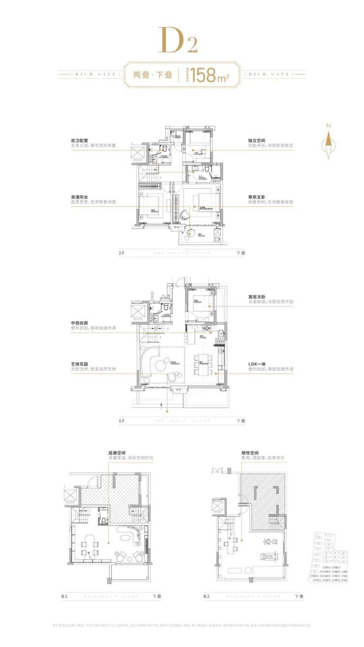 叠加:约136-158㎡(上叠150㎡,下叠158㎡)