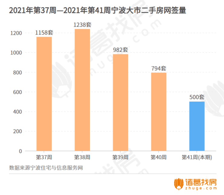 第41周(10.04-10.10),宁波大市共网签二手房 500套 ,环比前一周(982套)下跌 49.09% 。