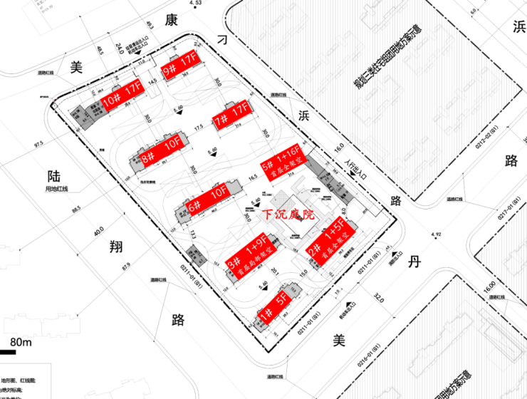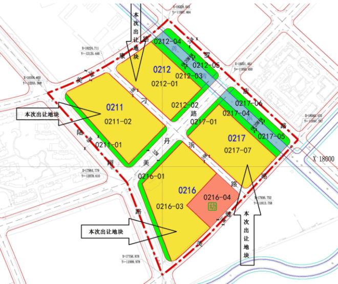 0212-01地块:东至0217-04公共绿地,南至美健路,西至刁浜路,北至0217-01地块,出让面积16124.39㎡,容积率1.2,建筑面积19349.27㎡;