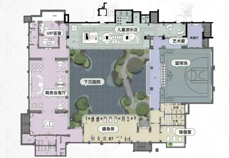 会所涵盖如半场室内篮球场、健身房、覆盖1-10岁分区的儿童游乐园等多元功能,架空层覆盖长者休憩、邻里交流等空间,兼顾全家日常需求,让社区不止是居所,更是有温度的生活共同体。(免责:本项目会所规划、功能布局、运营模式及开放时间仅供参考,后期可能根据实际运营情况调整,具体以交付及物业服务约定为准。)