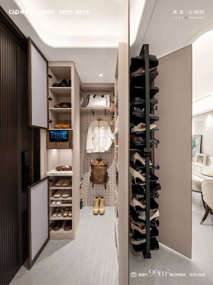 建发云湖玥约99㎡户型,提前联动专业收纳团队进行前置设计,打造了全屋定制化收纳系统。
