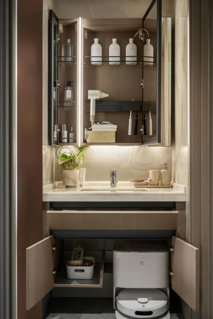 厨房配置臻选一线品牌,集成烟机灶具、大容量洗碗机,蒸烤箱一体机(126㎡)等满载功能;丰富且有序的收纳细节,让日常之间高级感随处可见。