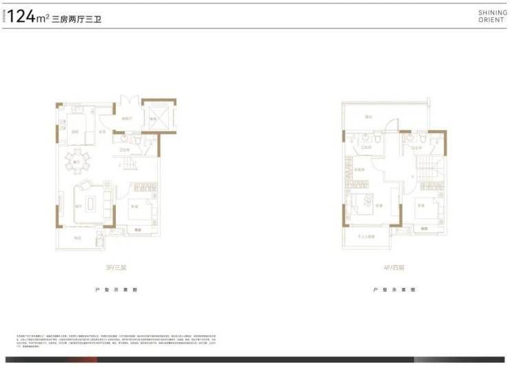 叠墅总高四层,设计了邻里空间,单元门设计也是非常的大气。上叠125㎡三房两厅三卫,顶楼闷顶层等可以拓展空间;下叠140㎡四房两厅三卫,另有超宽裕的赠送面积。