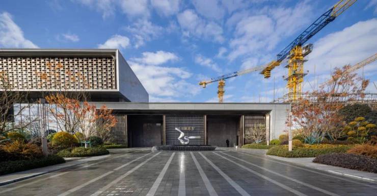 经典外立面,绘制恢弘天际线。采用高级米白色真石漆,以及简约灰色系涂料为主,并于细节间点缀流光金属线条,视觉感官更显东方的典雅韵致。