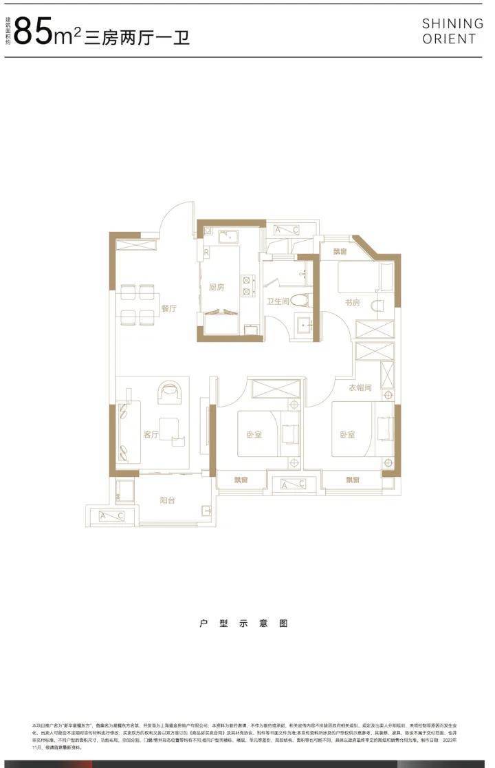 总体来看,85㎡户型上车门槛不高,户型空间舒适,格局方正,一点也不局促,很适合预算有限的小年轻刚需上车。