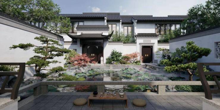 延续了一期江南水乡的建筑景观风格,以世界非遗香山帮的技艺匠心雕刻,承袭苏州园林造园工艺:粉墙黛瓦、飞檐戗角、亭台楼榭,打造具有中式风格的未来理想人居。