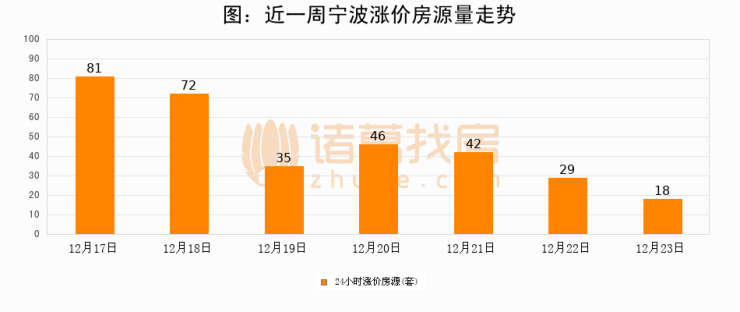 根据诸葛找房数据显示,宁波24小时涨价房源量为18套,较12月22日减少11套,环比下降37.9%。与此同时,涨价房源占比小幅回落,对于购房者来说是一个入市窗口期,购房者可抓住时机入市。