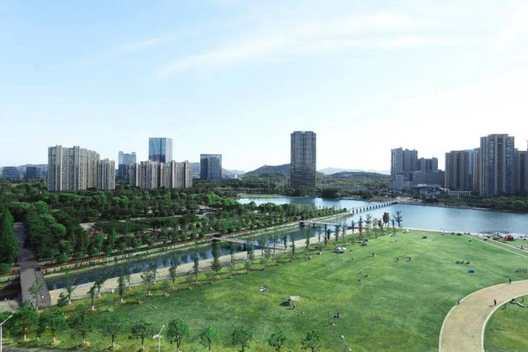 傍晚下班回家,可以牵着孩子、带着狗,顺着小径慢悠悠地散步到家门口的公园里。孩子嬉笑打闹,和爱人聊聊家常。