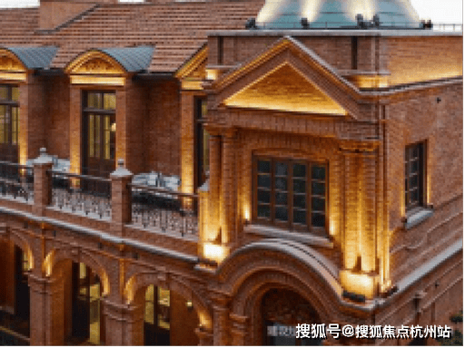 外立面:手工红砖、清水砖墙、石库门雕花、铁艺栏杆