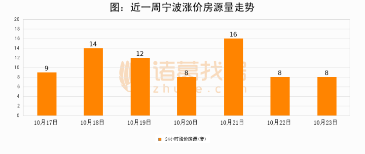 根据诸葛找房数据显示,宁波24小时涨价房源量为8套,较10月22日持平。