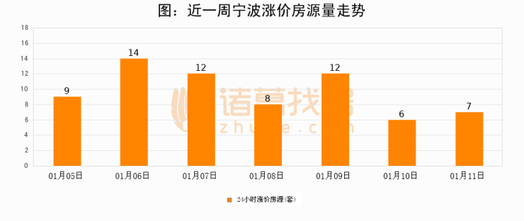 根据诸葛找房数据显示,宁波24小时涨价房源量为7套,较01月10日增加1套,环比上涨16.7%。与此同时,涨价房源占比小幅扩大,业主信心有所提升。