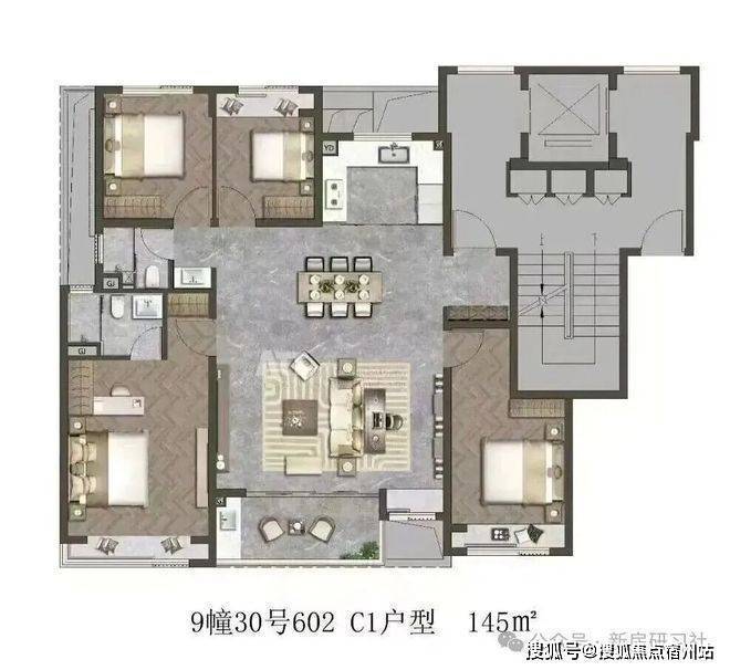 国贸海上原墅建面145㎡4房样板间实拍视频: