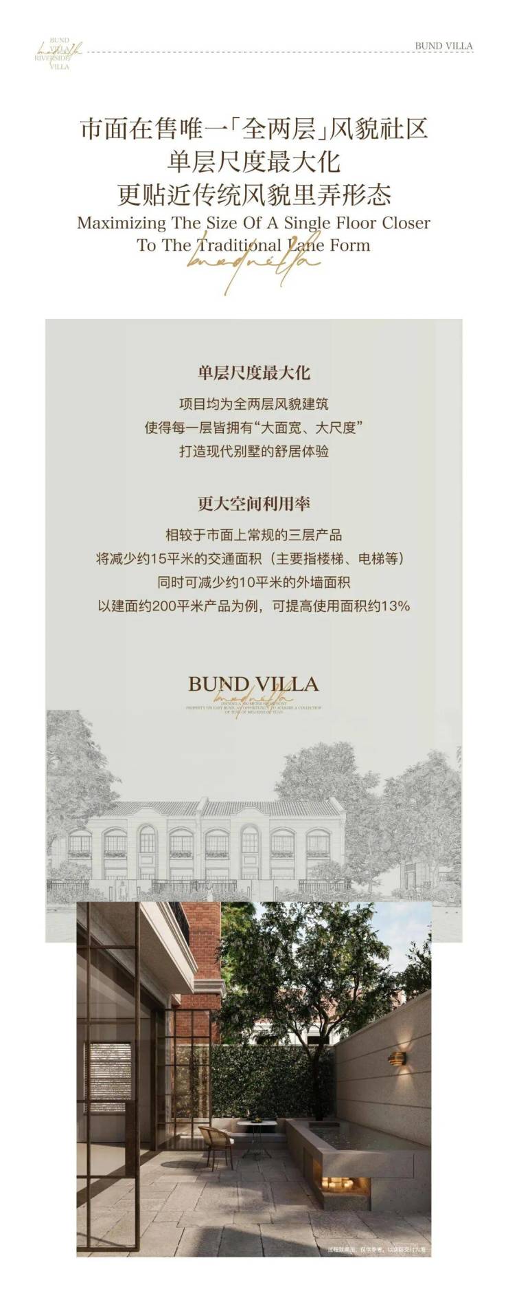 别墅附赠:地下室(层高约 6.6 米)+ 花园 + 露台,实得率约150%–200%