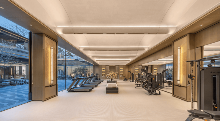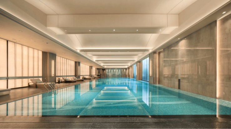 双重会所,高端社交:内部打造约1700㎡下沉式会所“瑞湖荟”与2500㎡架空层泛会所,配备恒温泳池、私宴厅、健身房等