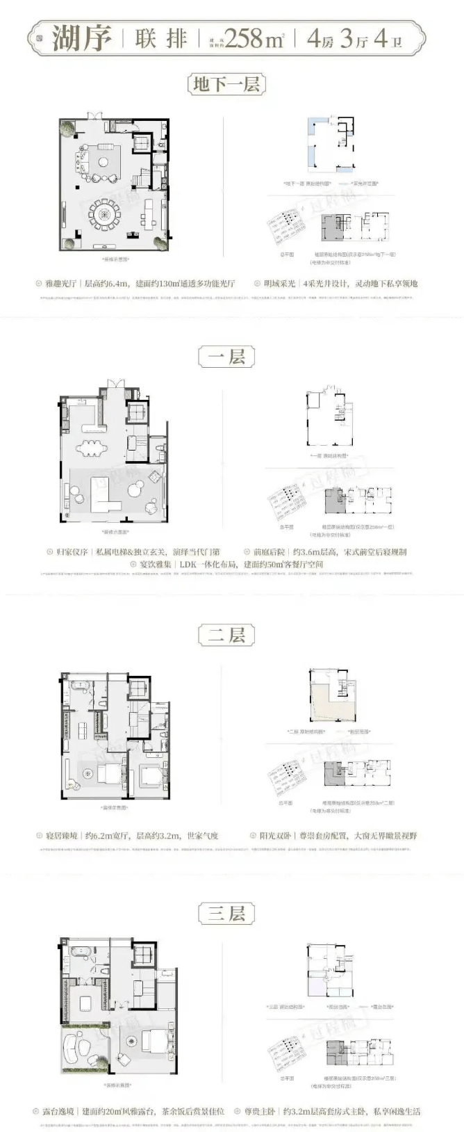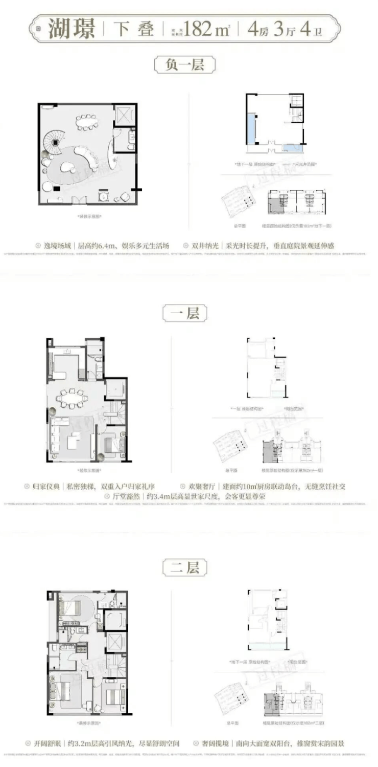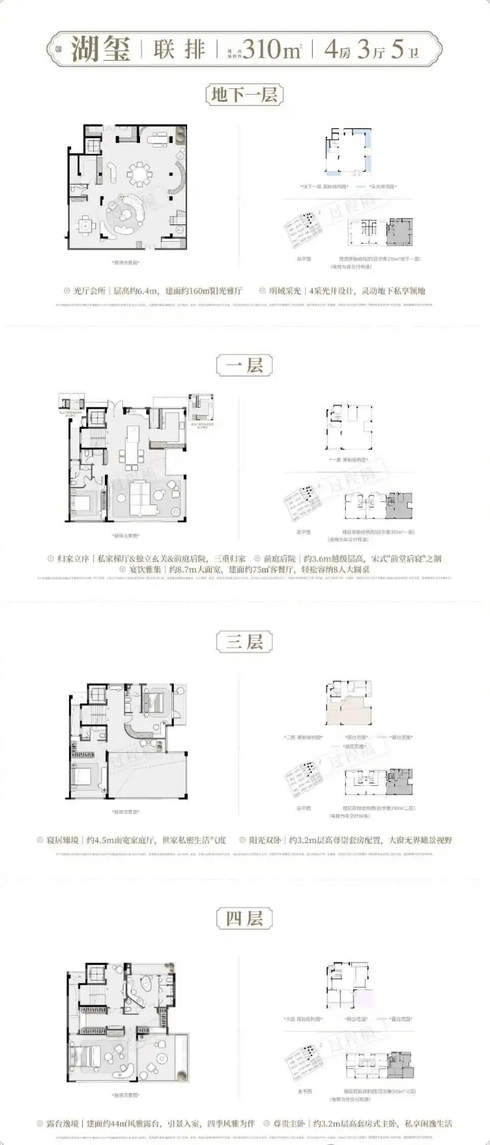 建面约182-206㎡藏品叠墅建面约258-310㎡传世联排将约6.4米层高地下室、私梯入户、奢度层高、前庭后院复刻宋人四时闲事宽幕厅堂的传世尺度,一一真实呈现。