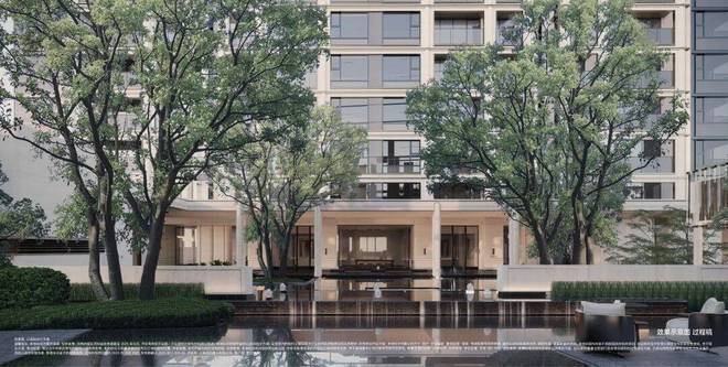 壹江臻邸官方售楼处电话:400-8818-994【预约☎】超千方镜面主题水院,时刻演绎自然与建筑的无界之美:澄澈镜面水面倒映建筑肌理与天光云影,搭配三株原生丛生乌桕的点缀,与回廊、浮岛相映成趣,营造出静谧雅致的亲水意境,这种沉浸式水景体验生活,在张江高端住区中尤为稀缺。