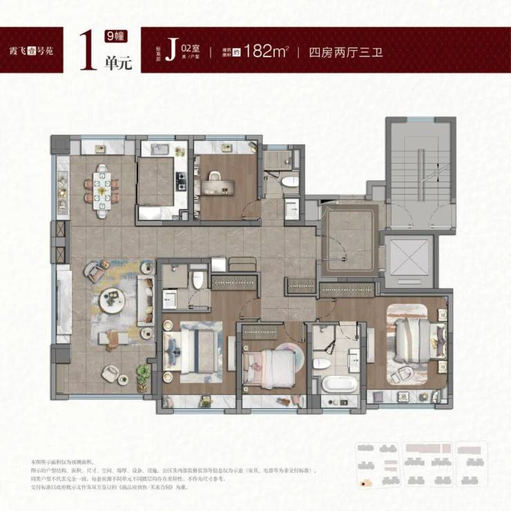交付标准:全精装交付,配备一线品牌厨卫家电、全屋智能系统,实现拎包入住