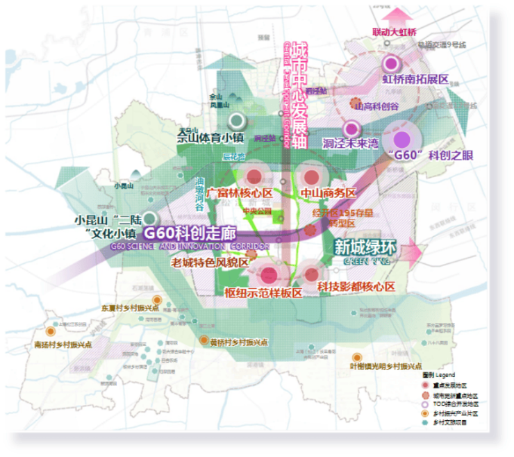 2)更高能级产业环伺,G60科创走廊+虹桥商务区