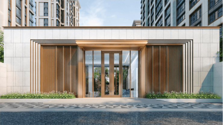 外立面上,用现代格调和海派奢雅勾勒出了建筑封面,现代几何立面与线条沟壑的有序错落,精致利落而不失韵律~
