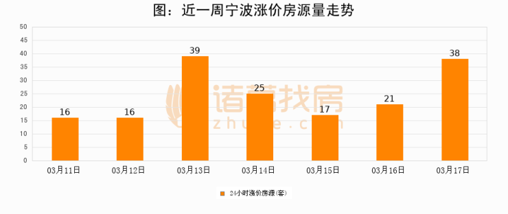 根据诸葛找房数据显示,宁波24小时涨价房源量为38套,较03月16日增加17套,环比上涨81%。与此同时,涨价房源占比小幅扩大,业主信心有所提升。