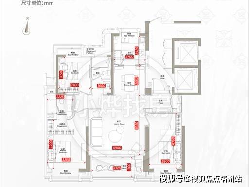 主卧 :豪华套房,独立卫浴 + 步入式衣帽间,南向大飘窗,私密尊崇。