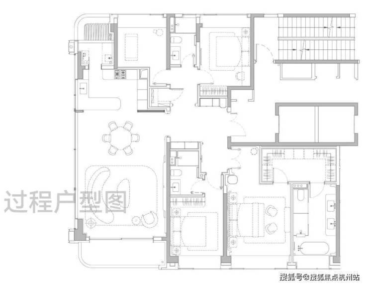 主卧大套房设计带超大主卫和衣帽间 ,面积约50㎡ ,尺度感与市面上近300㎡的顶豪拉平。