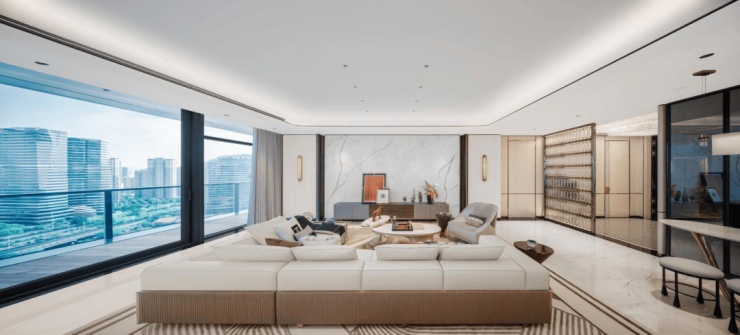 通过两次U型转弯,超大阳台以270°环绕起整个房间,每个卧室都能直通阳台,室内外的空气和风景无缝交融。在客厅和阳台的衔接处,还大手笔地配置了两扇全落地电动提升推拉门,价格相当于一辆特斯拉 Model Y汽车。