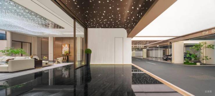 地下一层入户大堂,从车库入口到地下大堂都考究之至,不负杭州大平层标杆作品之名。等候厅每个区域都精心打造,一路仿佛在光影空间中穿行,尤其入户之时的星空穹顶设计,更如同身处灿烂星空之下,浮躁的心瞬间沉淀下来。