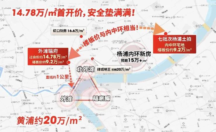 外滩、北外滩比外滩瑞府贵太多,虹口下游也比它高,就连内中环地价也追上了它,这样的价格安全垫,在内环难寻第二个。