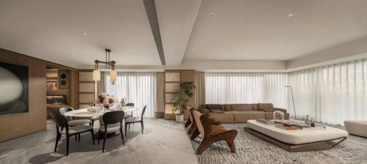 约240㎡客厅,成为家族迎来送往的“私人会所”。连通北向次卧形成近90㎡的LDKGT超级厅堂,无论是商务伙伴的远见卓识,还是家族挚友的午后闲谈,都在此从容承载。