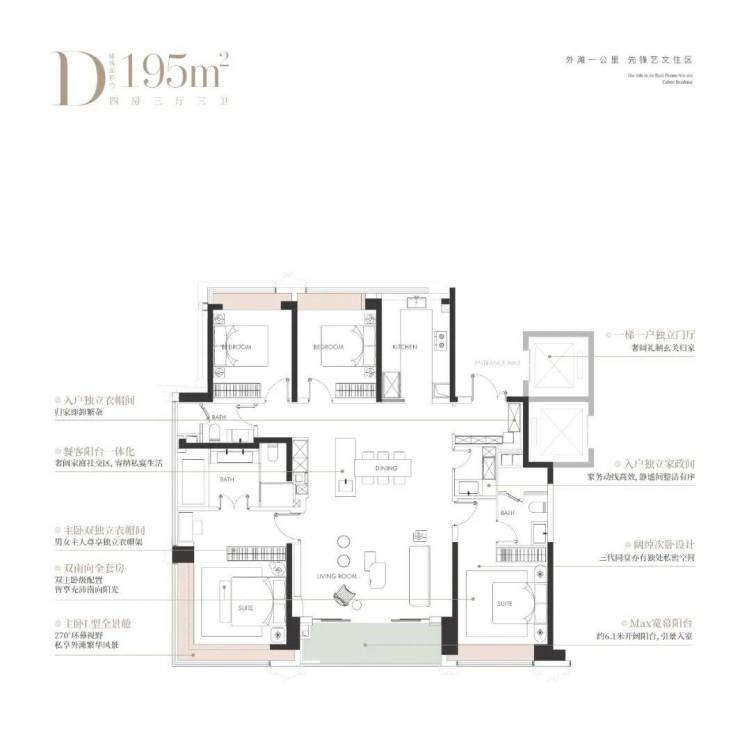 全能户型:124-330㎡全周期改善,尺度平权、高得房率、270° 景观