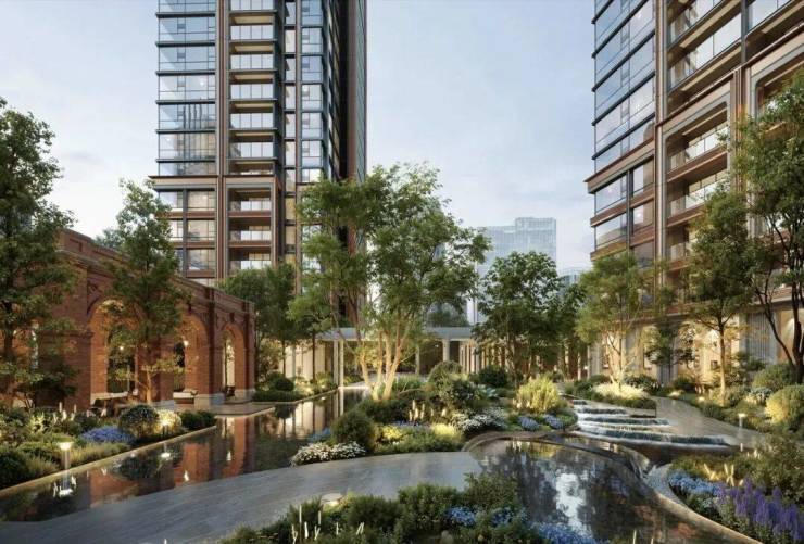 有承载海派记忆的红砖艺术长廊,让行走成为与历史的对话;仪式感十足的迎宾树阵,让归家如穿自然仪仗;还有文化景墙、宠物友好花园、全龄疗愈花园等场景。这些设计并非孤立景观,而是融合“漫步、社交、休闲”功能,最终呈现“可停留、可互动、可欣赏”的滨水美学街区。