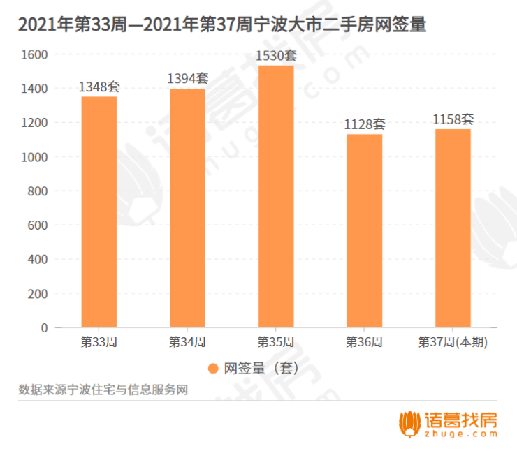 第37周(9.6-9.12),宁波大市共网签二手房 1158套 ,环比前一周 (1128套)上涨2.66% 。