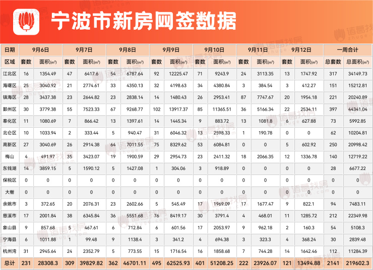 上周市六区二手房网签前三区域分别是 鄞州区、慈溪市、北仑区 ,鄞州区网签 268套 ,位列网签榜单之首;慈溪市网签 146套 ,位居第二;北仑区市网签 145套 ,位居榜单第三名。