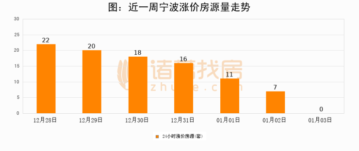 根据诸葛找房数据显示,宁波24小时涨价房源量为0套,较01月02日减少7套,环比下降100%。与此同时,涨价房源占比小幅回落,对于购房者来说是一个入市窗口期,购房者可抓住时机入市。