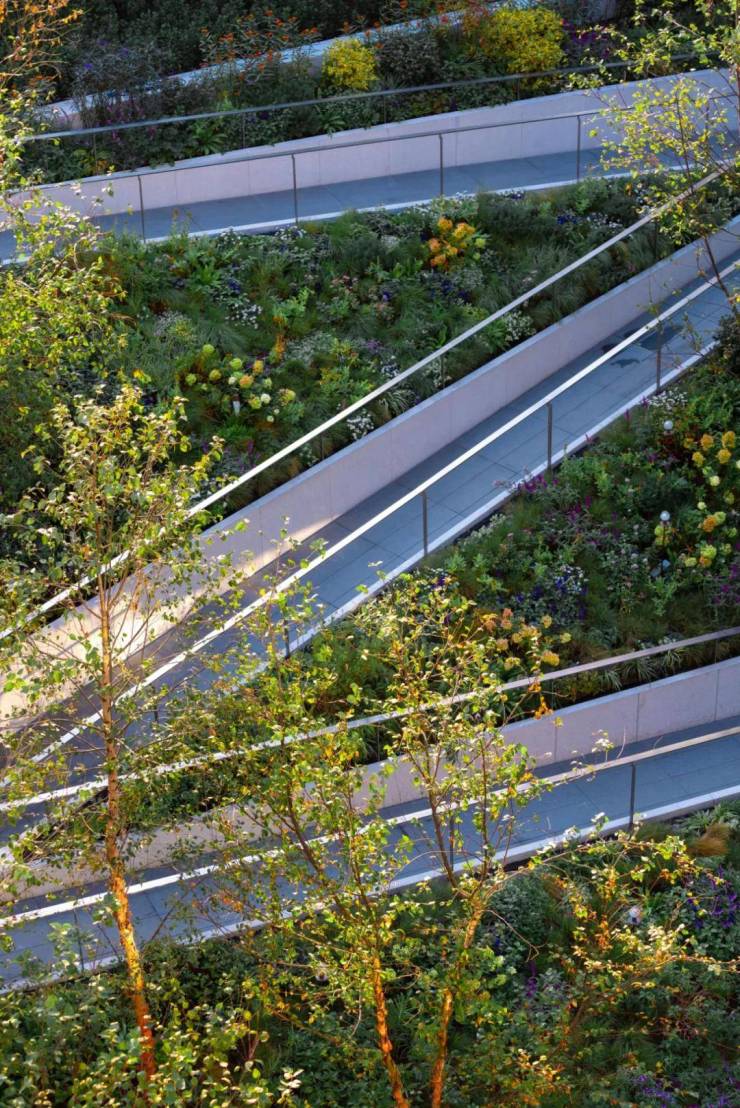 从一层大堂到约9.45m标高的高线公园、屋顶花园等一系列空间融合,创造了多维立体的社交生活场景。