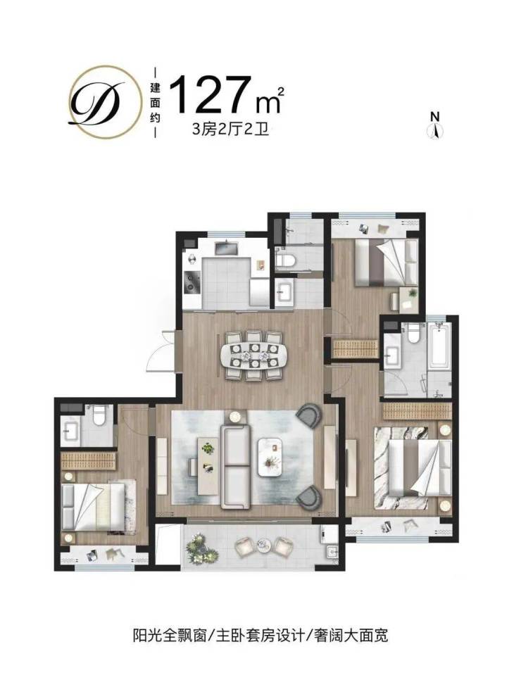 127㎡:3室2厅2卫,楼王级户型,仅余22套,总价约642万