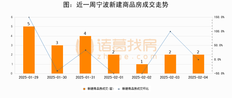 根据宁波市房产市场管理中心数据显示,2025年02月04日宁波新建商品房成交2套,较昨日持平