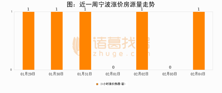 根据诸葛找房数据显示,宁波24小时涨价房源量为1套,较02月03日增加1套,环比上涨0%。与此同时,涨价房源占比小幅扩大,业主信心有所提升。