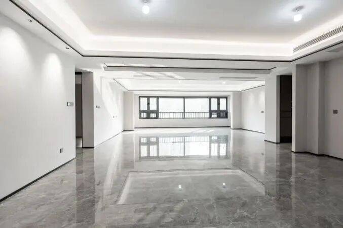 南向约18m大面宽,大横厅与三个南向卧室一字排开,每个卧室都带有大飘窗,几乎每一个空间都是大屏视野。超尺度的客厅空间,是难得可贵的家庭社交场域,无论是亲朋好友欢聚,还是孩子的生日派对都能轻松驾驭。