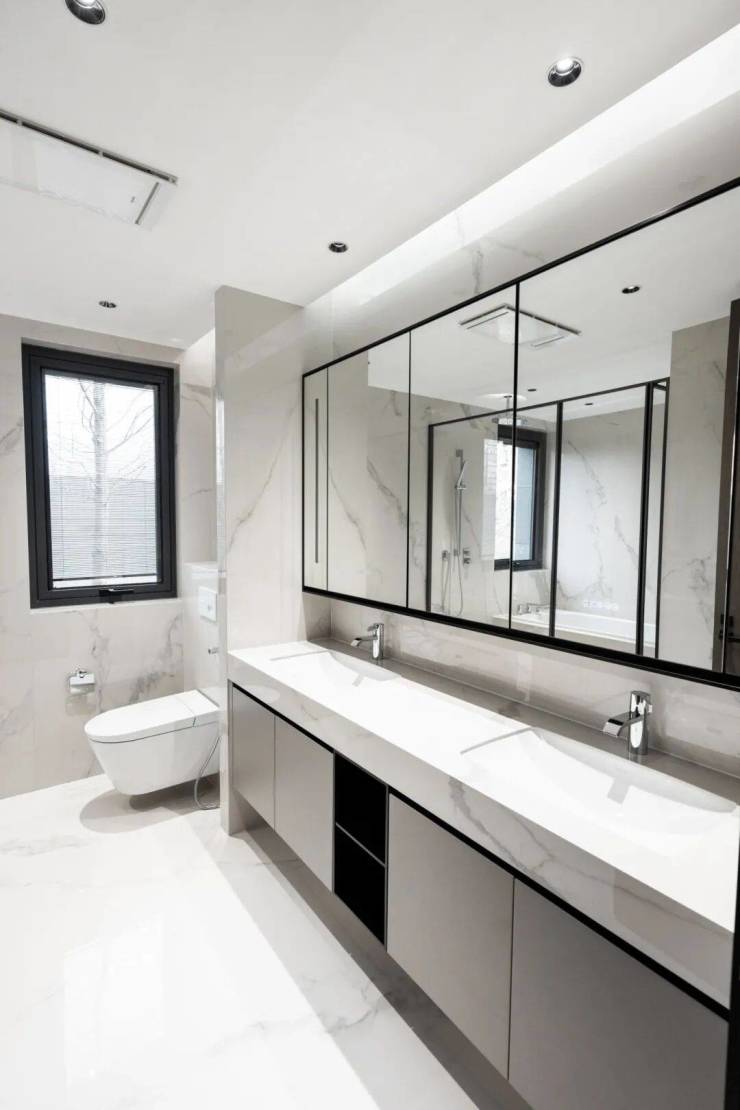 选用的全是一线大牌,唯宝一体智能马桶/台盆/卫生喷枪、当代的龙头/淋浴花洒组合、西门子浴霸、凯玛电热毛巾架,高端项目就是这么奢阔。