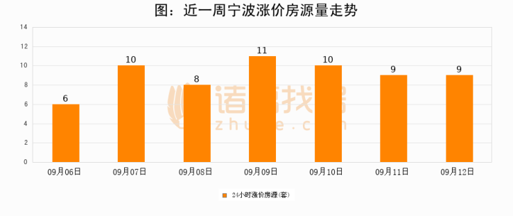 根据诸葛找房数据显示,宁波24小时涨价房源量为9套,较09月11日持平。