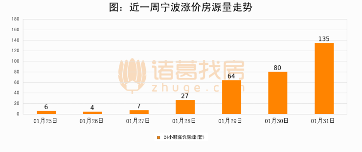 根据诸葛找房数据显示,宁波24小时涨价房源量为135套,较01月30日增加55套,环比上涨68.8%。与此同时,涨价房源占比小幅扩大,业主信心有所提升。