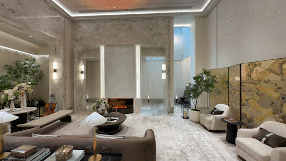 搭配入户景观与落地窗自然渗透设计,翡雲悦府·悦墅II期打造了一个以LDKB无界宽厅为核心的流动五联厅,彻底打破 “客厅-餐厅-厨房-庭院-卧室” 的传统割裂。