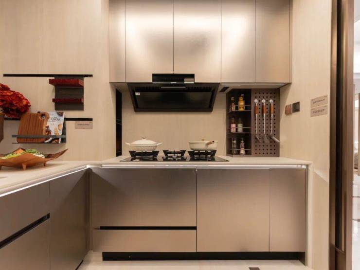 项目对厨房的考量贯穿每一处细节:采用高效的U型布局,洗、切、炒动线一气呵成。