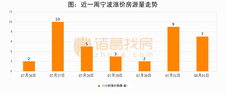 根据诸葛找房数据显示,宁波24小时涨价房源量为7套,较07月31日减少2套,环比下降22.2%。与此同时,涨价房源占比小幅回落,对于购房者来说是一个入市窗口期,购房者可抓住时机入市。